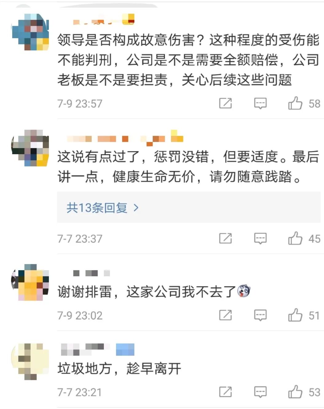 律师表示,“首先,公司对员工的这种体罚制度显然是违法的,无视员工的身体权、健康权。不管是不是员工自己“二选一”选择的,显然吃辣条吃坏肚子这件事,是履职期间发生,是公司对员工进行不当处罚的直接结果,公司应当承担相应的法律责任。”就这个方面,公司应当赔偿员工医疗费、交通费等直接损失,如医嘱建议应补充营养、卧床休息,还应赔偿营养费、误工费等。但吃辣条是否会引发后遗症、是否需要后续治疗、如何赔偿,则存在操作层面的难度。“除非有专业鉴定机构的鉴定意见。但就目前司法实践而言,如果仅仅是胃部炎症等疾病,能够鉴定后续治疗损失的案例很少。”